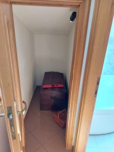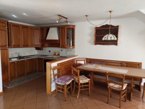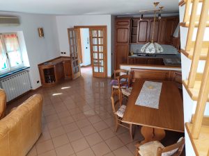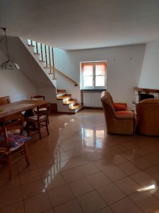 L’immobile è ottimamente distribuito: l’ingresso si apre su un comodo disimpegno, con primo bagno e un pratico ripostiglio. Da qui si accede all’ampio soggiorno con caminetto, ambiente caldo e accogliente, affiancato da un angolo cottura ben attrezzato.