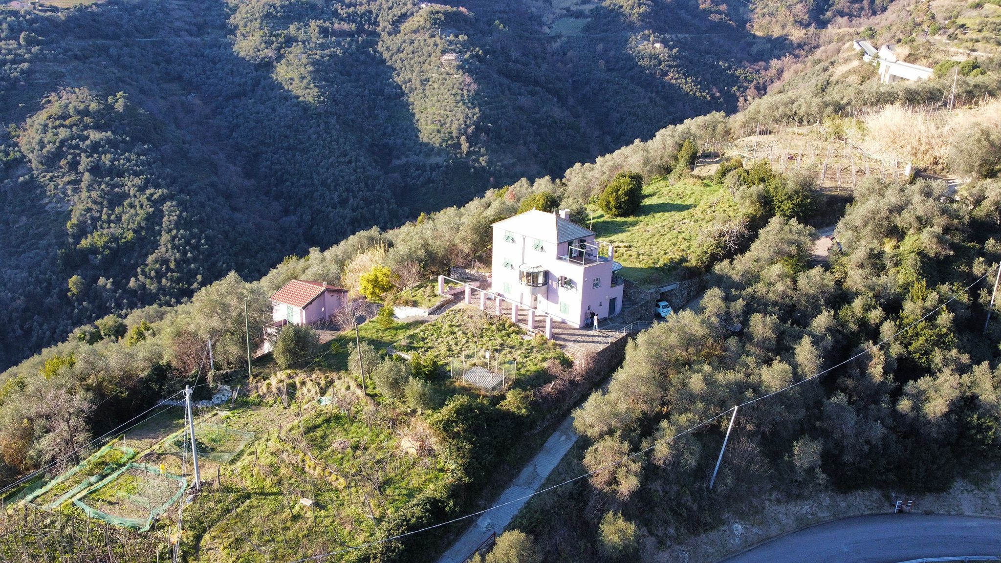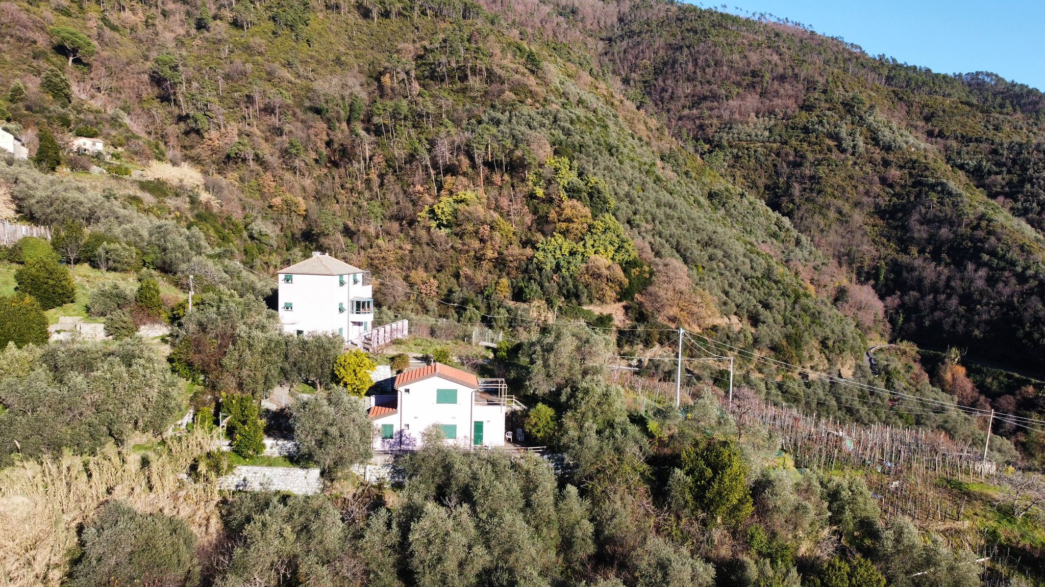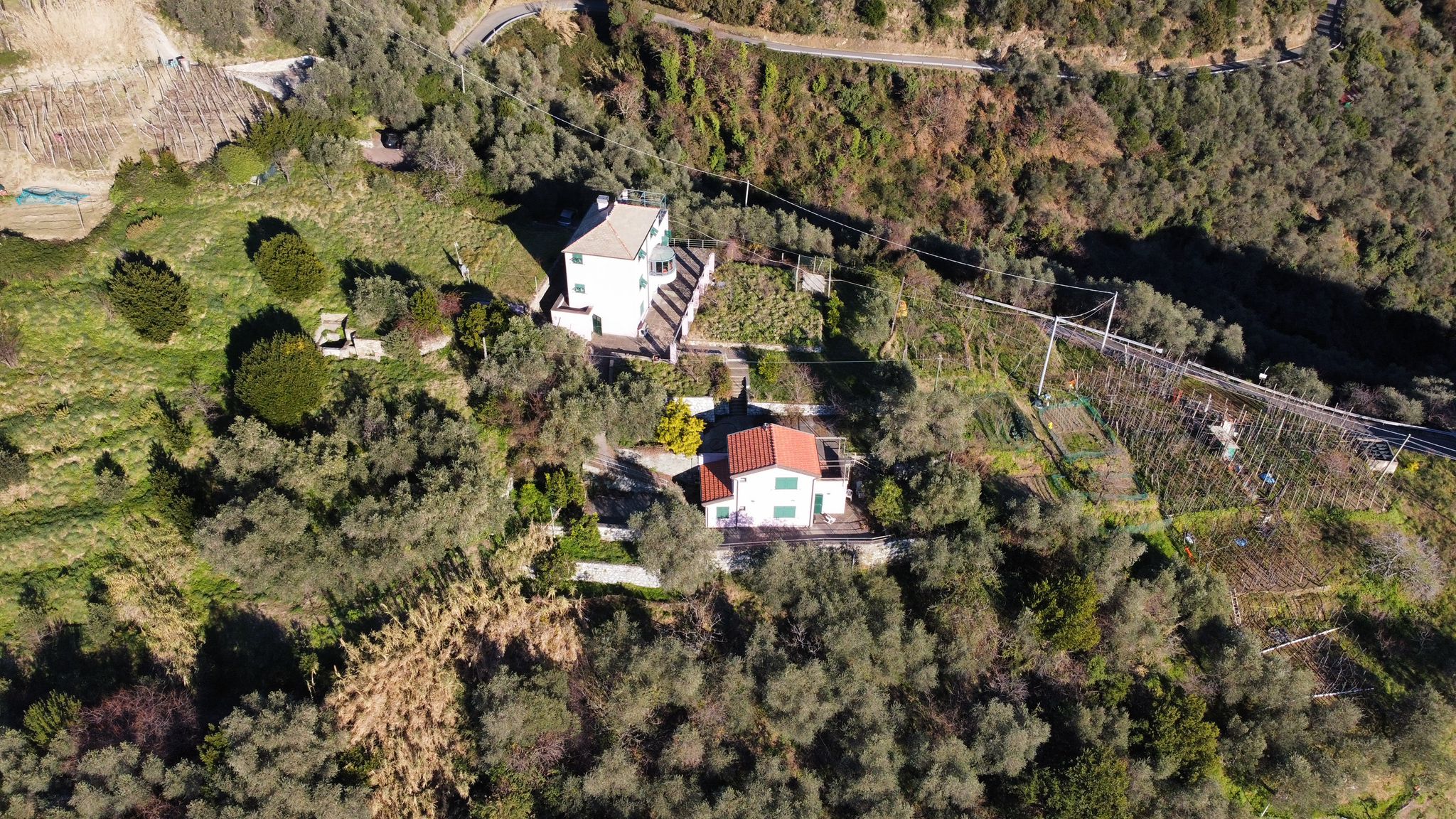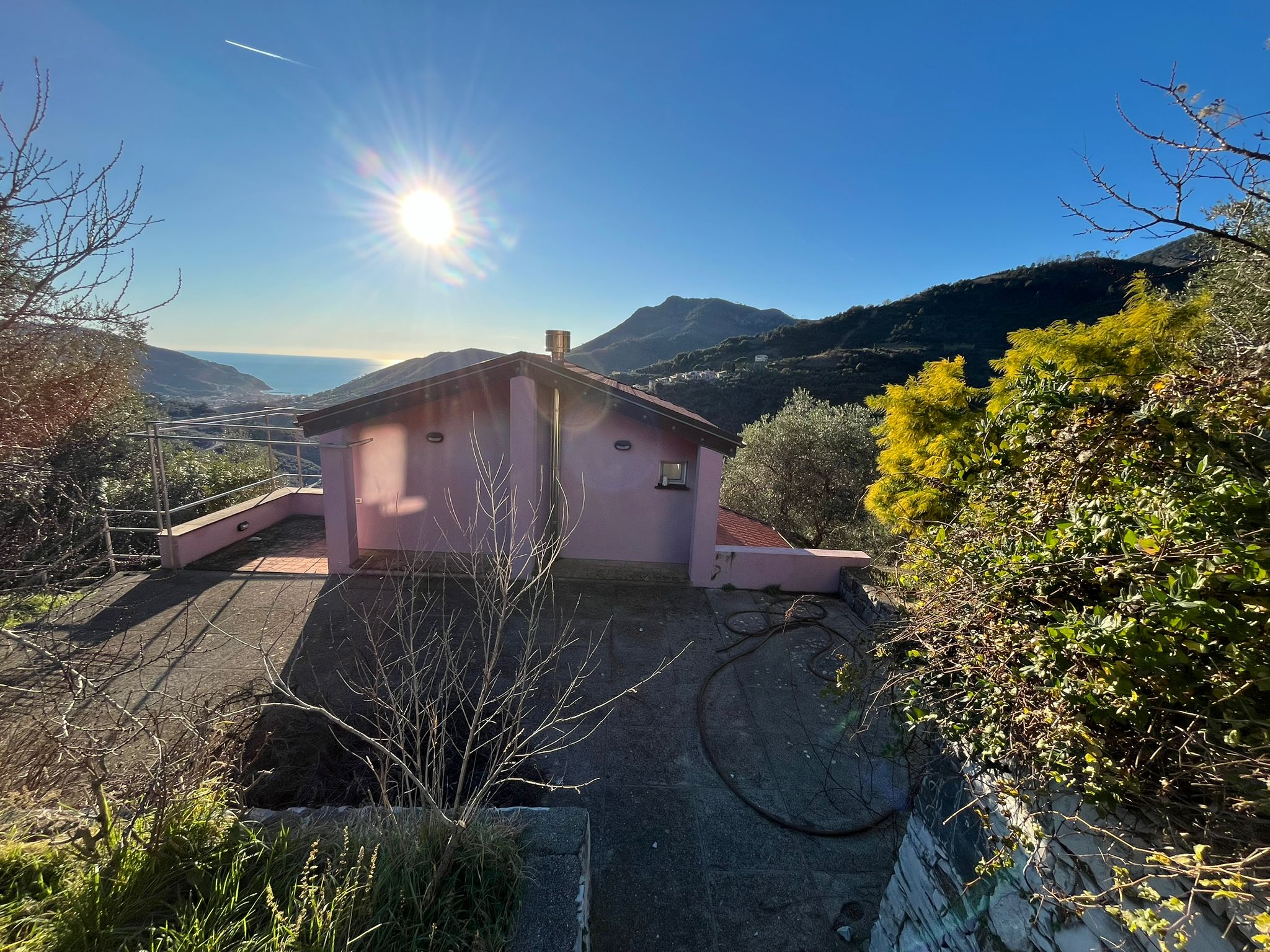 La proprietà è circondata da un terreno in gran parte pianeggiante, in parte coltivato a prato e in parte precedentemente adibito a vigneto, ideale per la realizzazione di una piscina panoramica a sfioro con vista sul golfo.