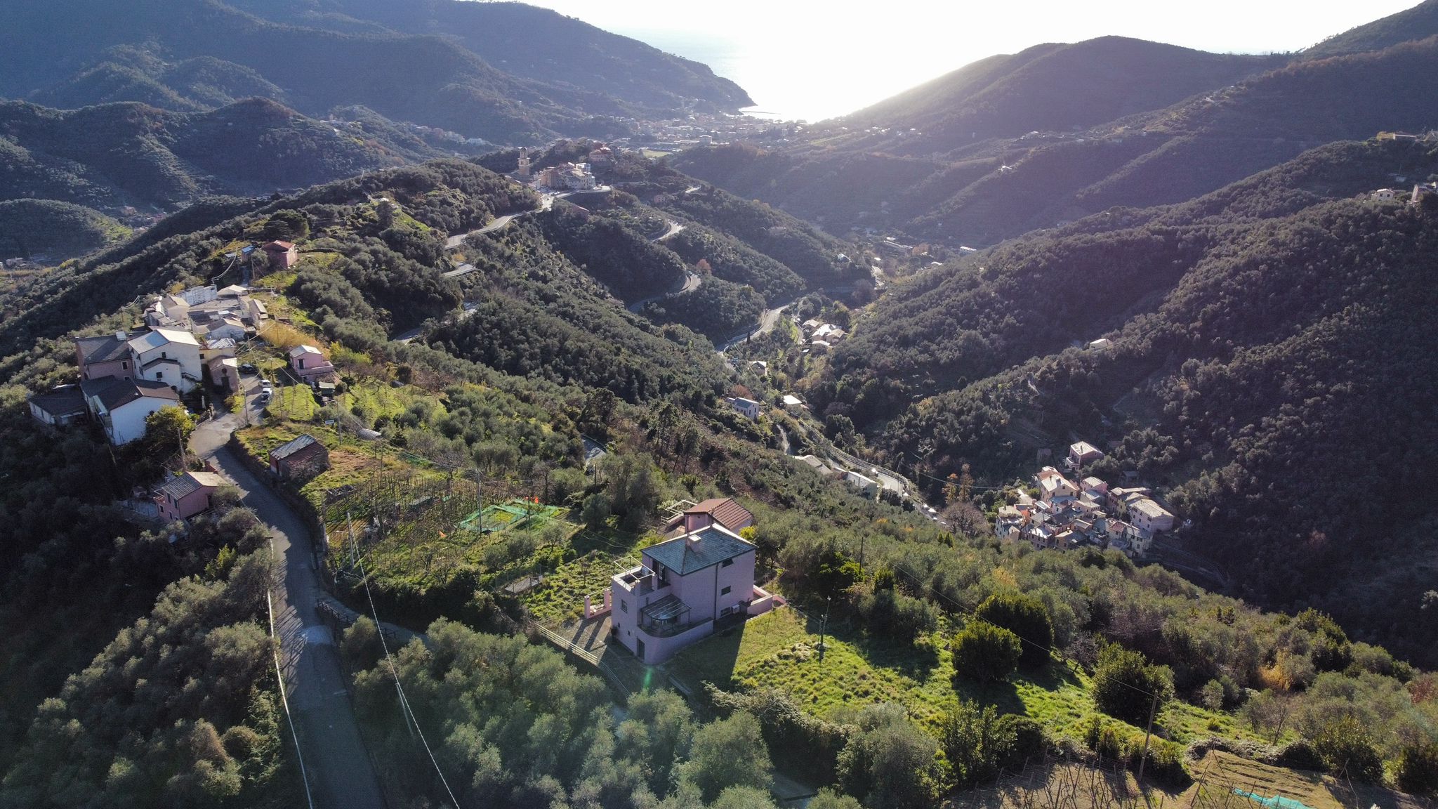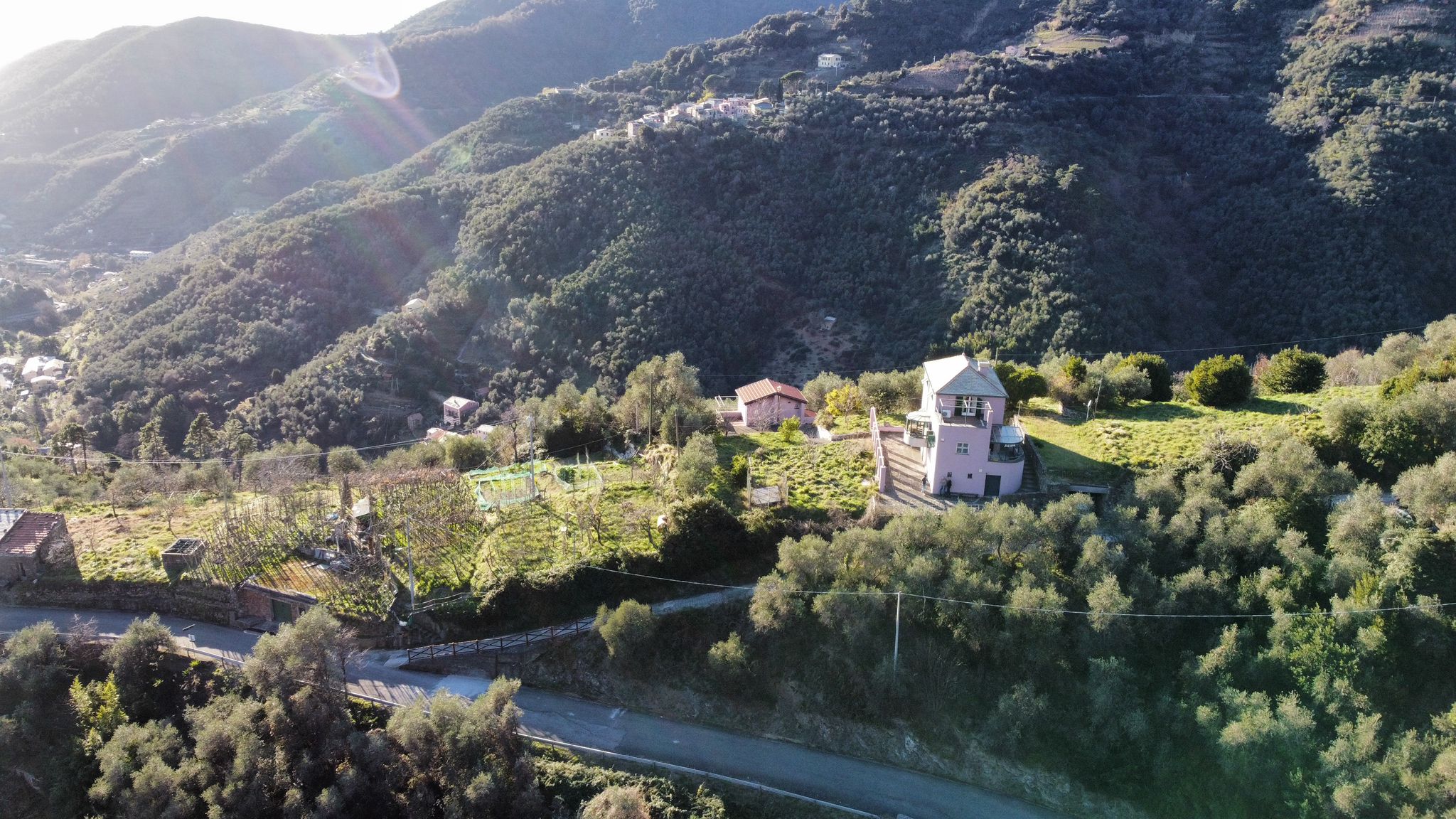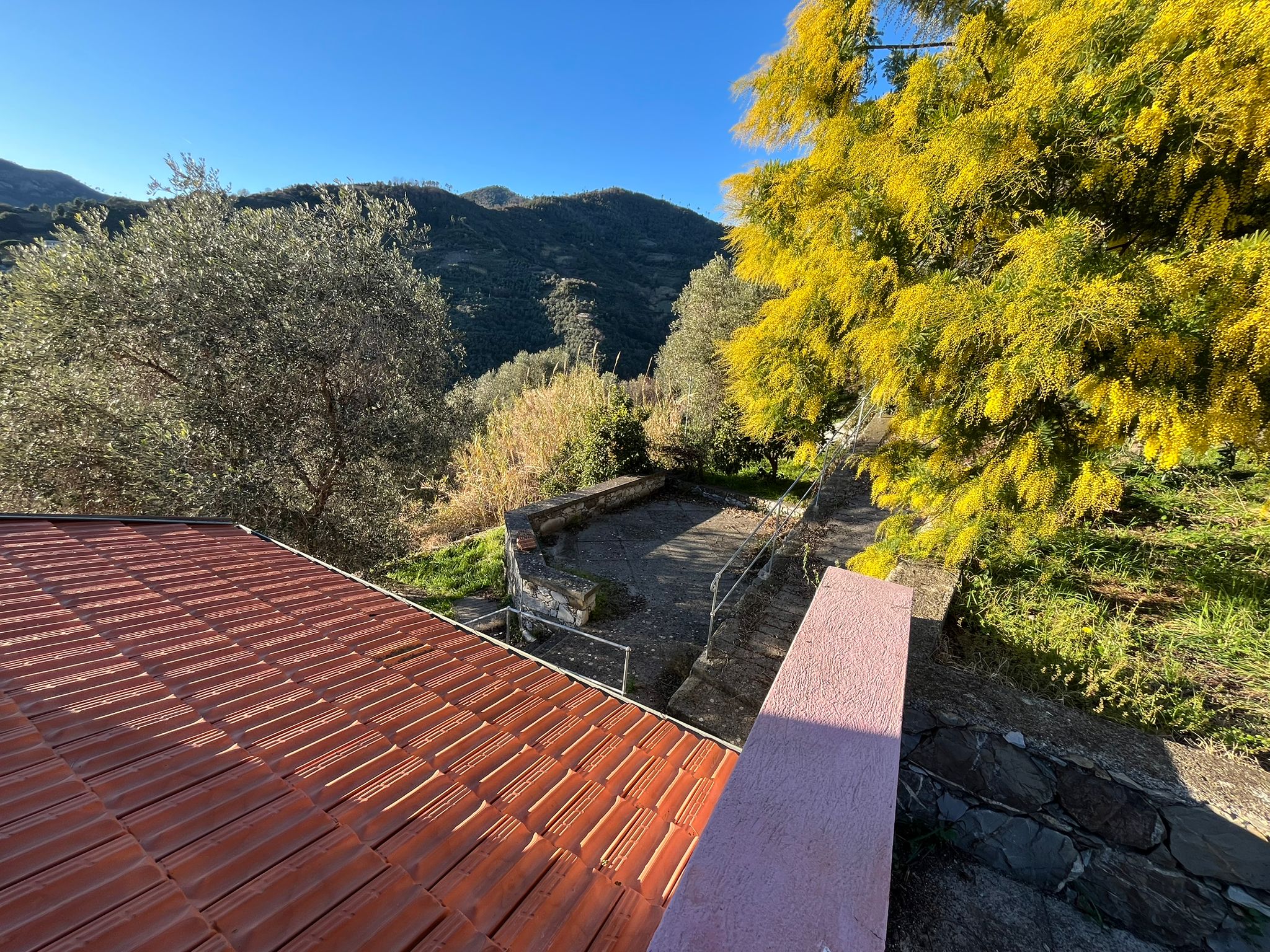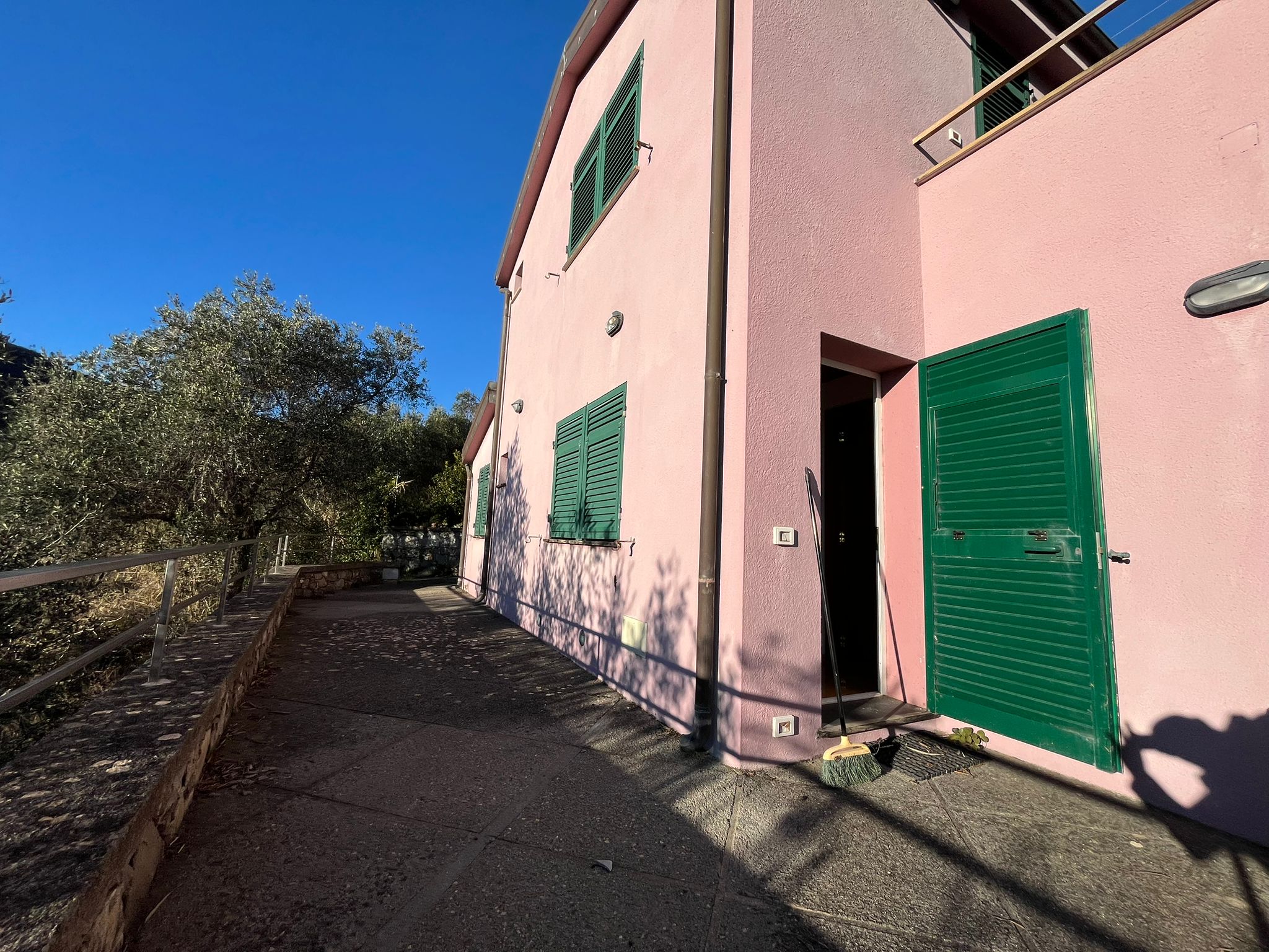 La proprietà è circondata da un terreno in gran parte pianeggiante, in parte coltivato a prato e in parte precedentemente adibito a vigneto, ideale per la realizzazione di una piscina panoramica a sfioro con vista sul golfo.